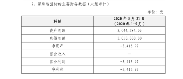 在公告中,万搏官方网站-万搏wanbo(中国)科技披露了深圳智慧树的主要财务数据(未经审计),如下图所示。